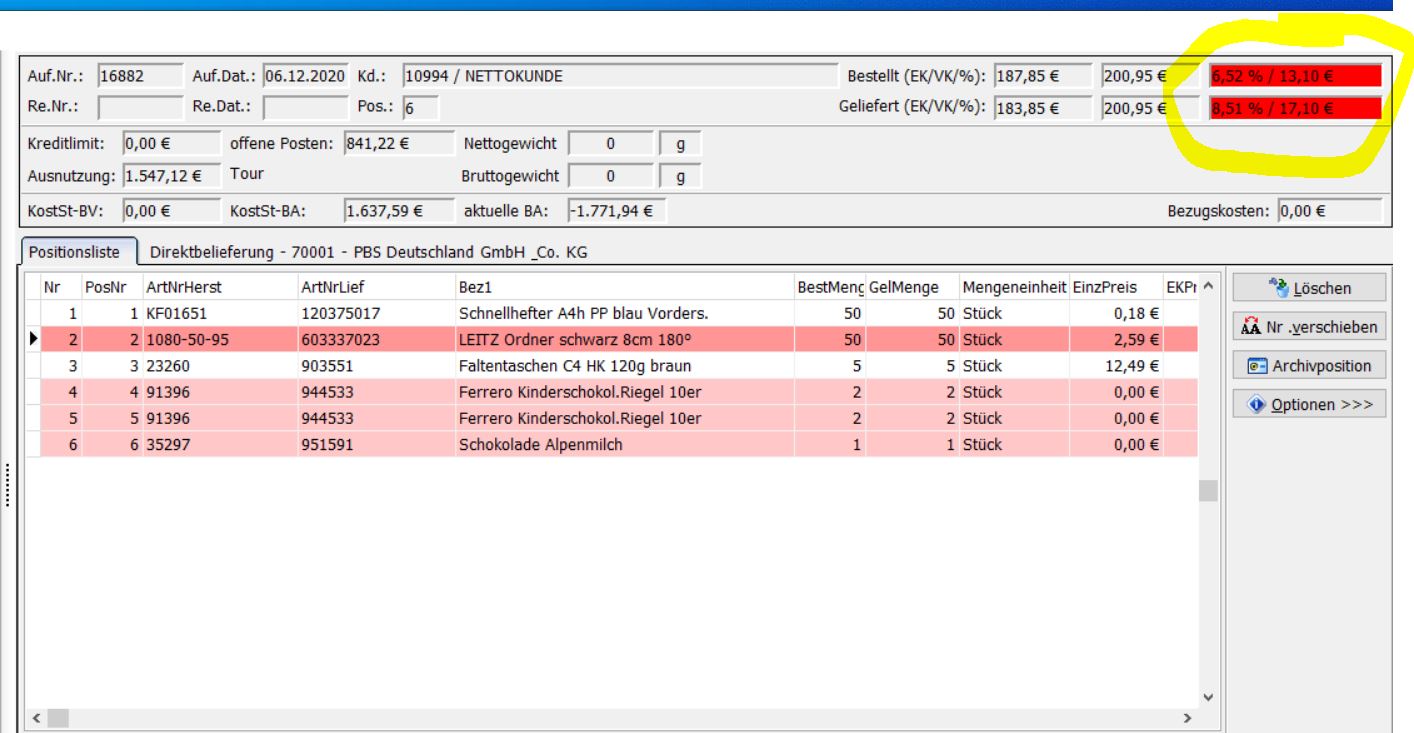 Pos 1 und Pos 2 sind mit dem Kunden besprochene Sonderpreise.