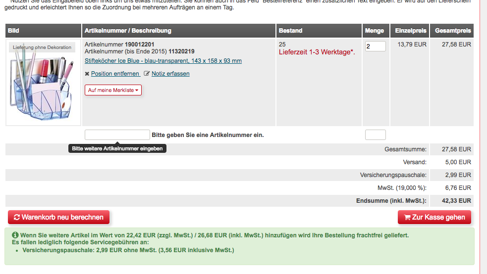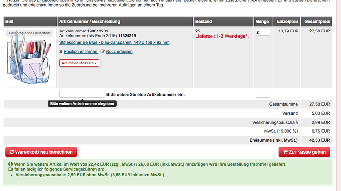 Es passiert ab und an das Kunden eine kleine Nachlieferung bestellen und zahlen dann halt die Fracht.